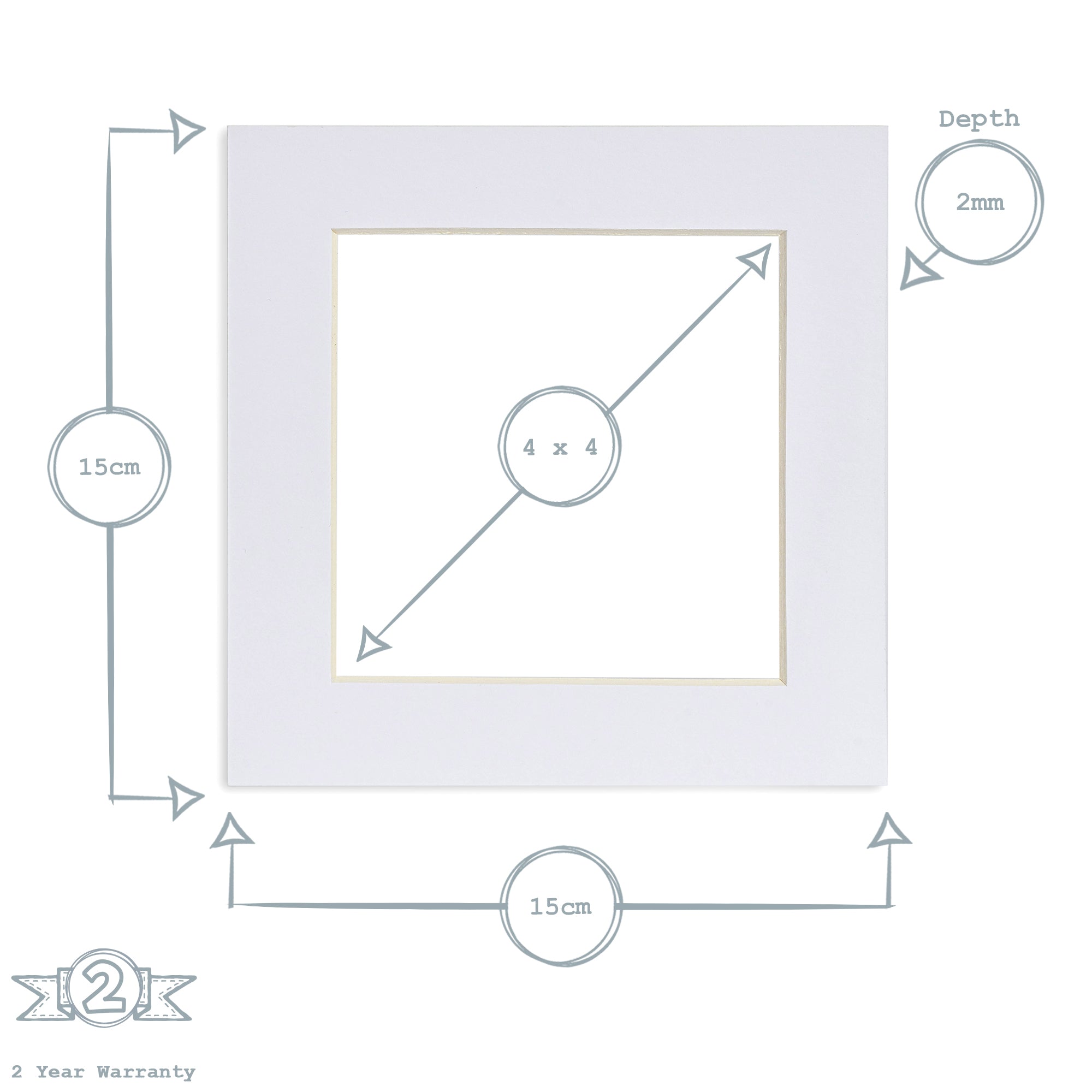 • Dimensions: Fits Frames: 6 x 6 inches Aperture: 4 x 4 inches Width: 15cm Depth: 0.5cm Height: 15cm