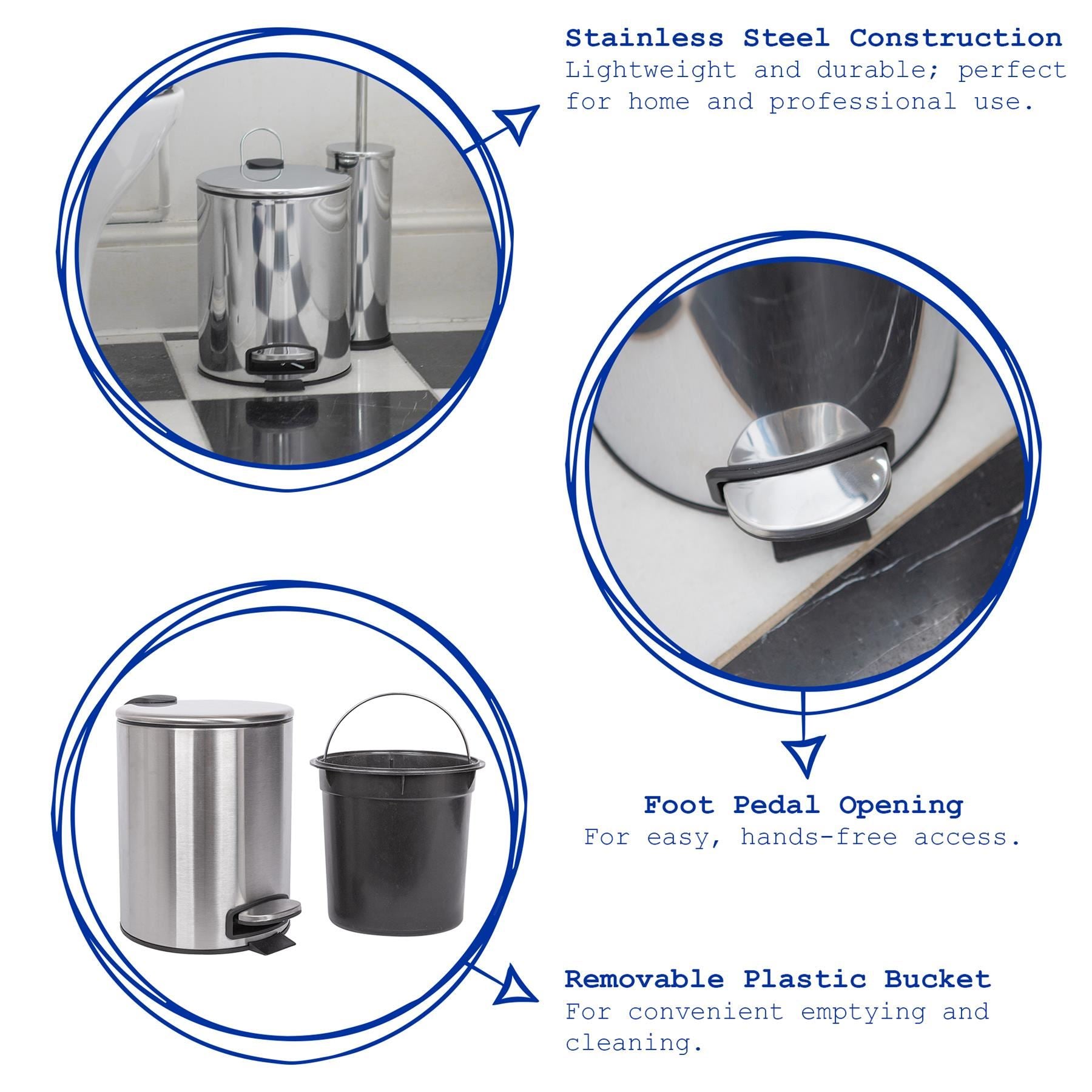 5L Round Stainless Steel Pedal Bin