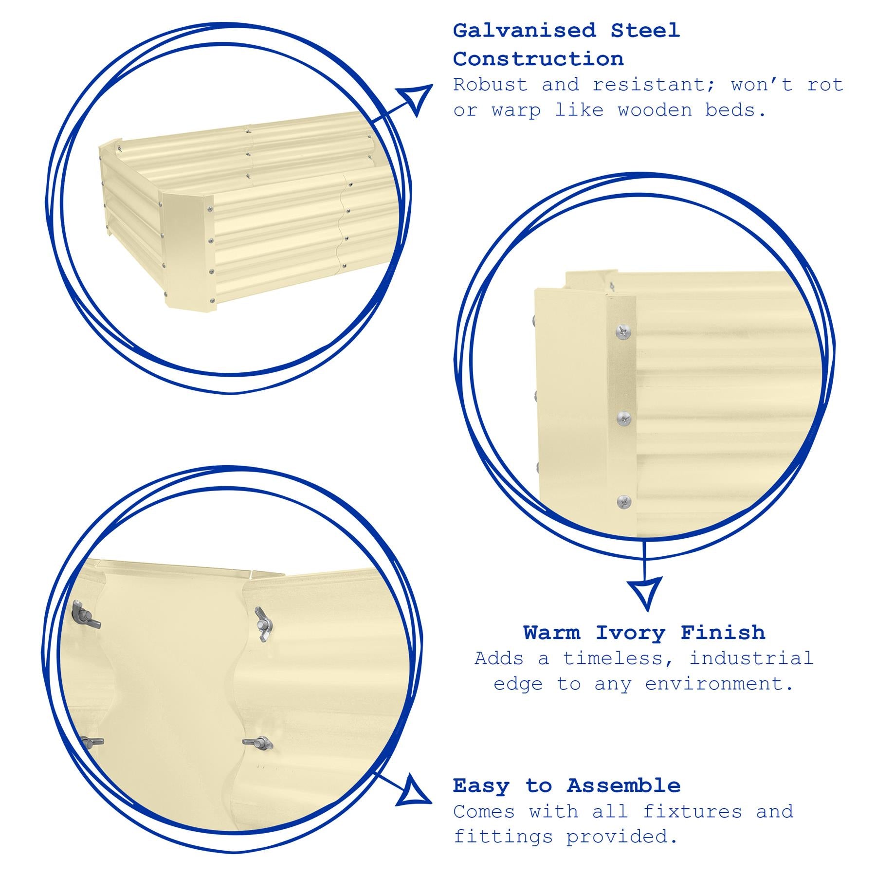 • Galvanised Steel Construction - Robust and resistant; won't rot or warp like wooden beds