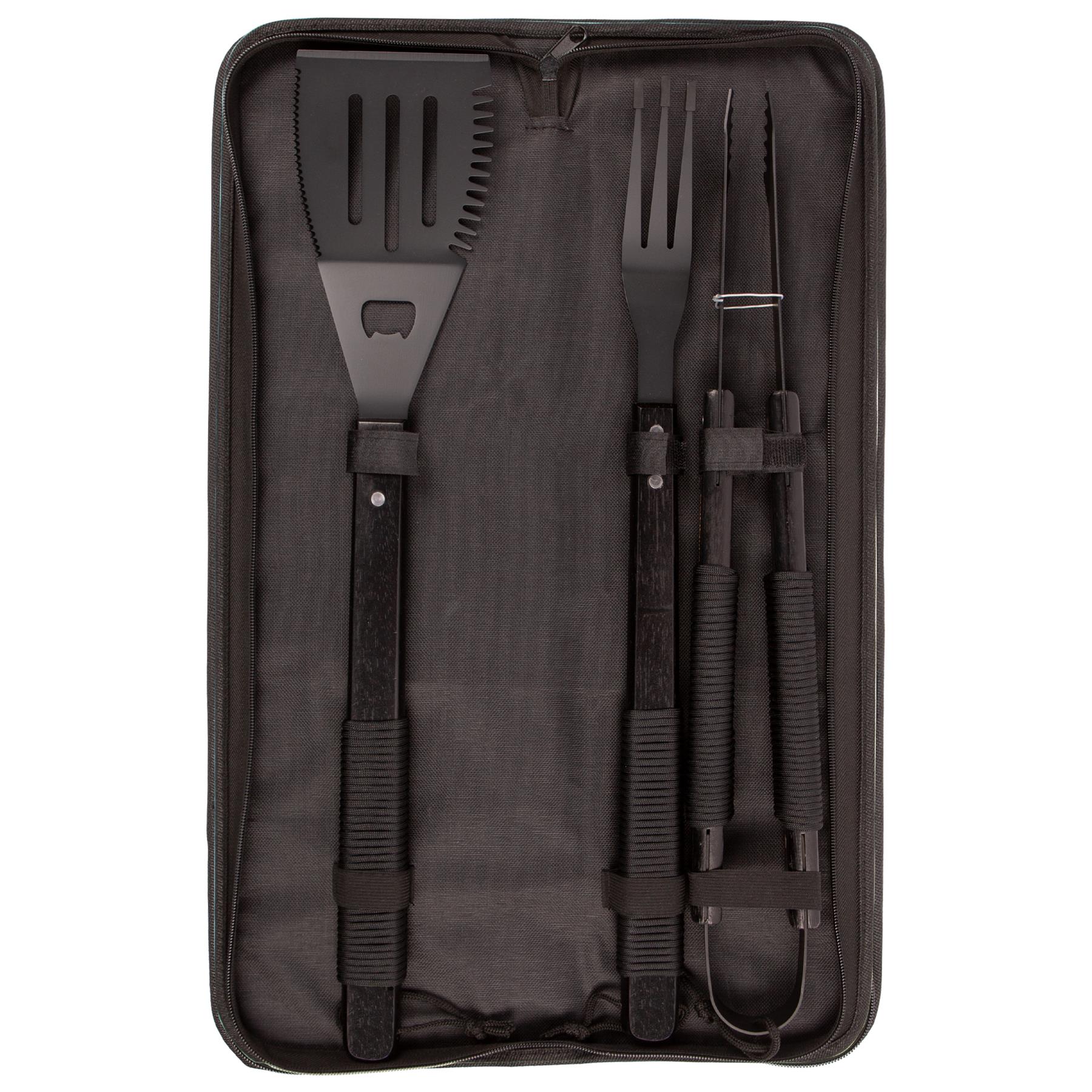 • Set Includes Tongs, Fork & Multi-Function Spatula - With twin serrated edges and built-in bottle opener